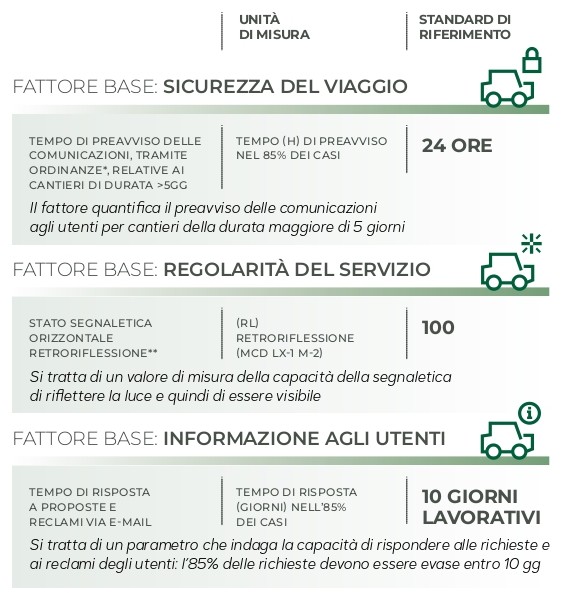 Gli indicatori di qualità elencati hanno carattere di sperimentazione e sono conformi alle disposizioni della Direttiva del Ministero delle Infrastrutture e dei Trasporti n. 102 del 19 febbraio 2009.